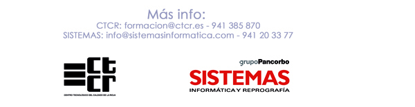 POLÍTICA DE PROTECCIÓN DE DATOS - En cumplimiento de lo dispuesto en la LOPD, les informamos que los datos que figuran en el presente documento han sido recabados de fuentes accesibles al público, Internet, revistas especializadas del sector, ferias y convenciones a las que hemos asistido y/o tarjetas de visita, pasando a formar parte de un fichero propiedad de las siguientes entidades, SISTEMAS DE OFICINA DE RIOJA S.L., LOGIC SOLUCIONES SOFTWARE, S.L., GESTIÓN DE COMUNICACIONES Y DATOS S.L., respectivamente domiciliadas en Logroño, C/Rafael Azcona 6, C/Rafael Azcona 8, C/Rafael Azcona 12, con el fin de utilizarlos para el envío de información comercial relativa a servicios ofrecidos por las mercantiles citadas que pueda resultar de su interés; esa información incluye comunicaciones publicitarias y promocionales a través de correo postal, fax, correo electrónico o cualquier otro medio. Puede ejercer sus derechos en la dirección indicada. Transcurrido el plazo de quince días desde el envío de la presente comunicación sin recibir negativa fehaciente de su parte al uso de sus datos para comunicaciones comerciales a través de procedimientos electrónicos, entenderemos que consiente dicho tratamiento, sin perjuicio de su derecho a proceder a la revocación del mismo en cualquier momento.